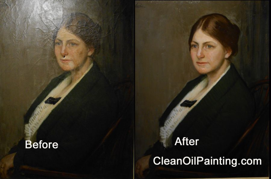 This is especially evident in paintings which have never been varnished. Cleaning and nourishing the paint surface, followed by varnishing, can restore the colors to reflect the artist's original vision.